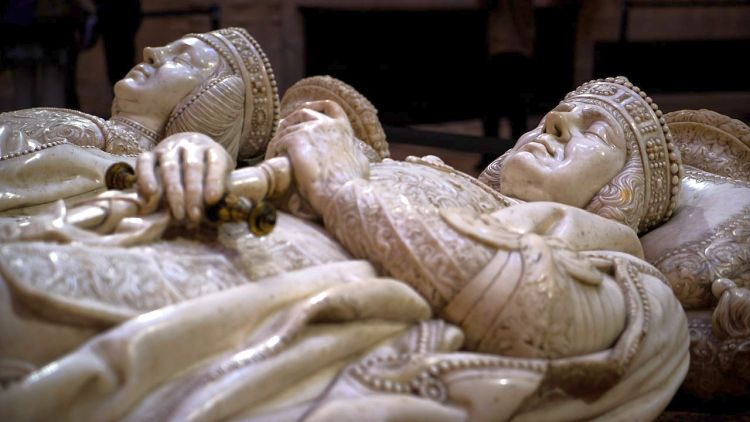 Gisantes dos Condestáveis de Castela na Catedral de Santa Maria, em Burgos (Espanha) Para praticar a virtude, admirá-la As pessoas são mais ensinadas a praticar a virtude do que a admirá-la. Mas, em relação a toda virtude, é preciso que se tenha uma admiração profunda, uma admiração razoável que proceda da razão, da inteligência iluminada pela Fé. E é depois de prestar à virtude esse preito de admiração — depois logicamente, não cronologicamente — que se tem a disposição de ânimo necessária para praticá-la. É só depois que se admirou a virtude como se deve, que ficamos em condições de compreender a malícia que existe no pecado; e é só depois de admirar a virtude e tratar de praticá-la, que se é capaz de compreender a gravidade do pecado, a reparação que ele merece, e a necessidade de repará-lo diante da justiça de Deus. Por isso é comovente ver, por exemplo, nas sepulturas medievais aqueles gisantes. Às vezes esposo e esposa deitados lado a lado sobre aqueles leitos de pedra, com uma almofada de pedra. Se eram nobres, com a coroa na cabeça e com as mãos postas. Tem-se uma sensação de castidade conjugal, que nos empolga.43 A admiração e o sacrifício Há na alma humana, quando procura viver na graça de Deus, uma forma de retidão perante Deus, Nossa Senhora e a Igreja, pela qual a pessoa, de tanto admirar, quer sacrificar-se. O desejo do sacrifício não é algo que Deus impõe, e que se considera uma aberração dentro da vida. Assim, seria um absurdo ter que passar pelo sacrifício, e o normal seria não sacrificar-se. As almas que pensam assim estão num estado incompatível com o amor. O verdadeiro amor pede o sacrifício. E haveria uma frustração e um vazio na vida se não houvesse sacrifícios.44