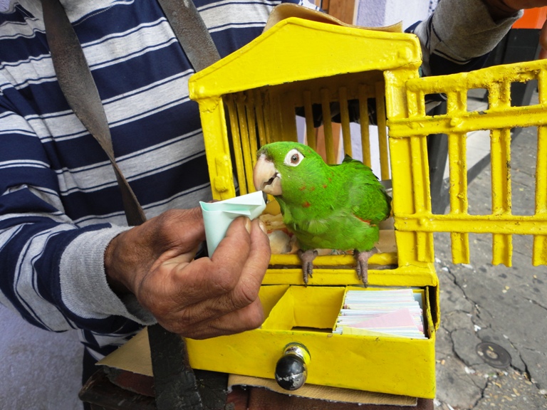 É que este trazia consigo uma gaiola feia em que mal cabia uma jandaia gordalhona. A jandaia - uma espécie de minipapagaio verde, lento e mudo - era a melhor colaboradora do homem do realejo e a mais firme torcida das criadas. Estava ela adestrada a pegar pelo bico, ao som do realejo e por ordem do dono (um "dono" que dá "ordens" outra coisa que vai morrendo neste mundo, que tem cada vez menos donos e mais gerentes e no qual cada vez menos se obedece a ordens), uns papeluchos dobrados, nos quais o hábil encenador escrevera vaticínios otimistas. Sôfregas, as criadas pagavam uma moeda e em troca recebiam da jandaia o vaticínio que se punham a ler imediatamente. Depois voltavam para casa alegres, levando consigo o sonho da semana: válido até que uma decepção o matasse ou até que viessem de novo com o homem, o realejo e a jandaia, novos vaticínios e novos sonhos. Ainda hoje, o realejo percorre de vez em quando Higienópolis. Jamais tive tempo de ir à janela para ver se será conduzido pelo mesmo homem, e se na gaiola ainda está a jandaia gordalhona. Provavelmente sim, pelo menos quanto à jandaia. Pois dizem que os papagaios, coitados, vivem mais do que os homens. E - lembro de passagem - é bem certo que não terão depois um Céu para compensá-los das gaiolas e das agruras da vida. (*) Excertos de artigo escrito pelo Prof Plinio para a "Folha de São Paulo" de 21 de outubro de 1977. |