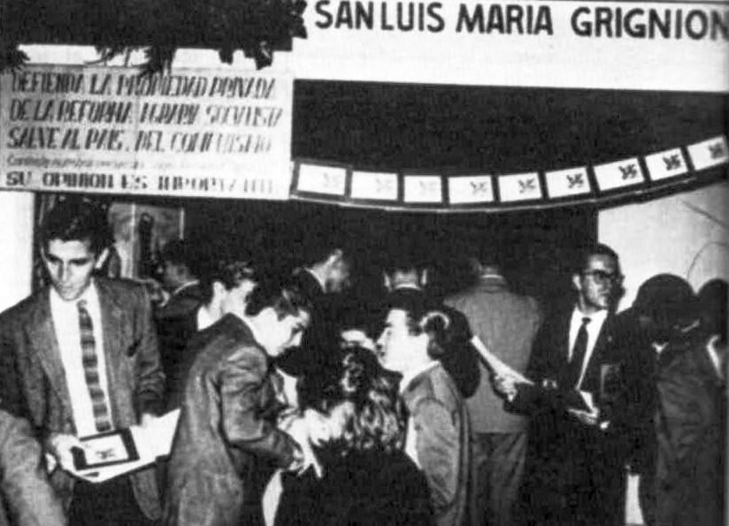 Interpelación a la Democracia Cristiana socializante Noviembre - Los diputados del Partido Demócrata Cristiano habían presentado en el Congreso Nacional (2) un proyecto de reforma empresarial de orientación claramente socializante. "Cruzada" publica entonces un número especial con el título Interpelación a los diputados demócrata-cristianos. El documento —escrito por el Dr. Cosme Beccar Varela (h)— contiene un detallado análisis del mencionado proyecto de ley a la luz de la doctrina pontificia, y demuestra que, de ser aprobado, producirá una completa estatización de la economía industrial y agropecuaria, hundiendo en la ruina a propietarios y obreros. La edición de la revista se distribuye en los kioscos de periódicos del centro, en librerías de Buenos Aires y por correo a todo el país. El empresariado, alarmado por las consecuencias de un proyecto tan contrario al derecho de propiedad, a la libre iniciativa y a la armonía que debe reinar en el trabajo, hace publicar la Interpelación, in extenso, en un folleto que tiene gran difusión en los medios industriales. 462 universitarios se suman a la Interpelación (3). Redactores y propagandistas de "Cruzada", en cuatro días de campaña en la calle Florida, obtienen 2.600 firmas de apoyo al pedido de definición a los diputados demócrata-cristianos. * Cinco días después la DC pretende responder, sosteniendo —sin de-mostrarlo— que "Cruzada" había empleado citas truncas de textos pontificios. Al mismo tiempo reafirma la posición socializante que la inspira. * Adeptos de la DC intentan provocar desórdenes sin conseguir impresionar a los transcúntes. Revistas de izquierda como "Primera Plana", "Todo" y "Planteo" informan sobre la campaña. Esta última publica un artículo con el sugestivo título Estalló la guerra ideológica entre católicos. La iniciativa democristiana no prospera y hasta hoy la Argentina se ve libre de una legislación socialista y confiscatoria de este tipo.