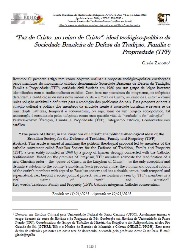 Paz de Cristo, no reino de Cristo: ideal teológico-político da Sociedade Brasileira de Defesa da Tradição, Família e Propriedade (TFP)
