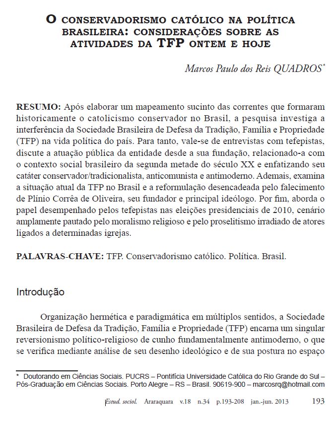 O conservadorismo católico na política brasileira: considerações sobre as atividades da TFP ontem e hoje
