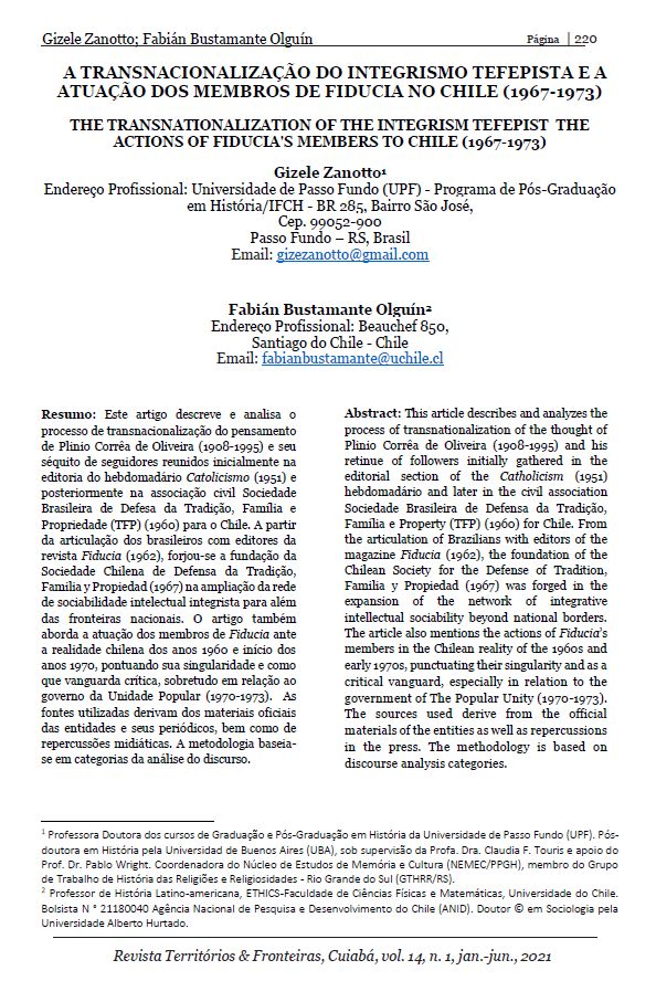 A transnacionalização do integrismo tefepista e a atuação dos membros de Fiducia no Chile