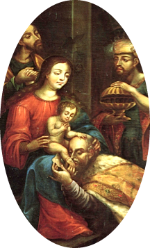 … adorando al infante Jesús; y reconocieron el beneficio grande de haberles nacido tan temprano el Sol de justicia, para ilustrar sus tinieblas. Hecho esto, hablaron al santo esposo Josef, engrandeciendo su felicidad de ser esposo de la Madre del mismo Dios; …