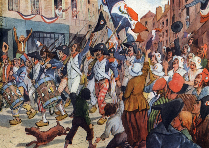 En contraste, tenemos la imagen, también romántica, del heroísmo francés. El heroísmo francés no es una especie de copia que los franceses han hecho del heroísmo alemán, sino que el heroísmo francés es ya un heroísmo romántico, que estalló en condiciones pésimas por ocasión de la Revolución Francesa. Creo que nada expresa tan bien ese heroísmo como la Marsellesa. Es un conjunto de armonías, un conjunto de élans, un conjunto de entrains que determinan una marcha ardiente hacia adelante. De espíritus dominados por algunos errores brillantemente enunciados y todo el ímpetu de la embestida revolucionaria.
