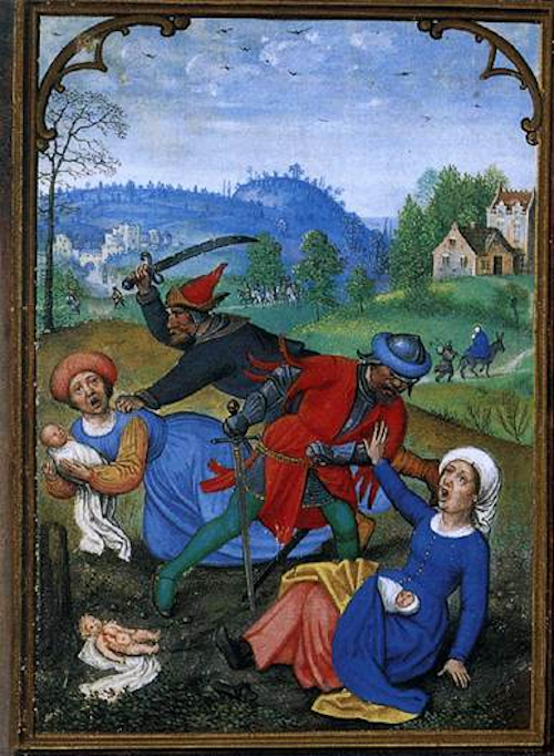 Masacre de los Santo Inocentes – al fondo la Huída al Egito