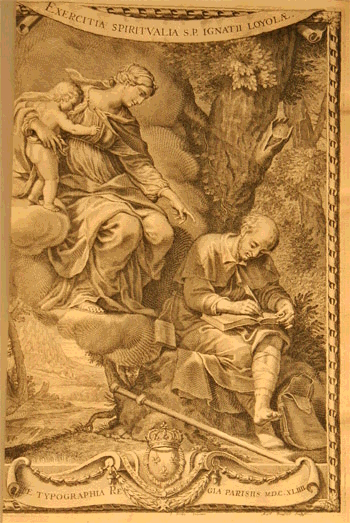 Yendo a la librería de [la iglesia del Sagrado] Corazón de Jesús, encontré un libro de tapa negra que decía: “Ejercicios espirituales de San Ignacio de Loyola”. Era una edición muy antigua. Me pareció bueno —quería convertirme— y lo compré por una niñería. Volví a casa y empecé a hojearlo.