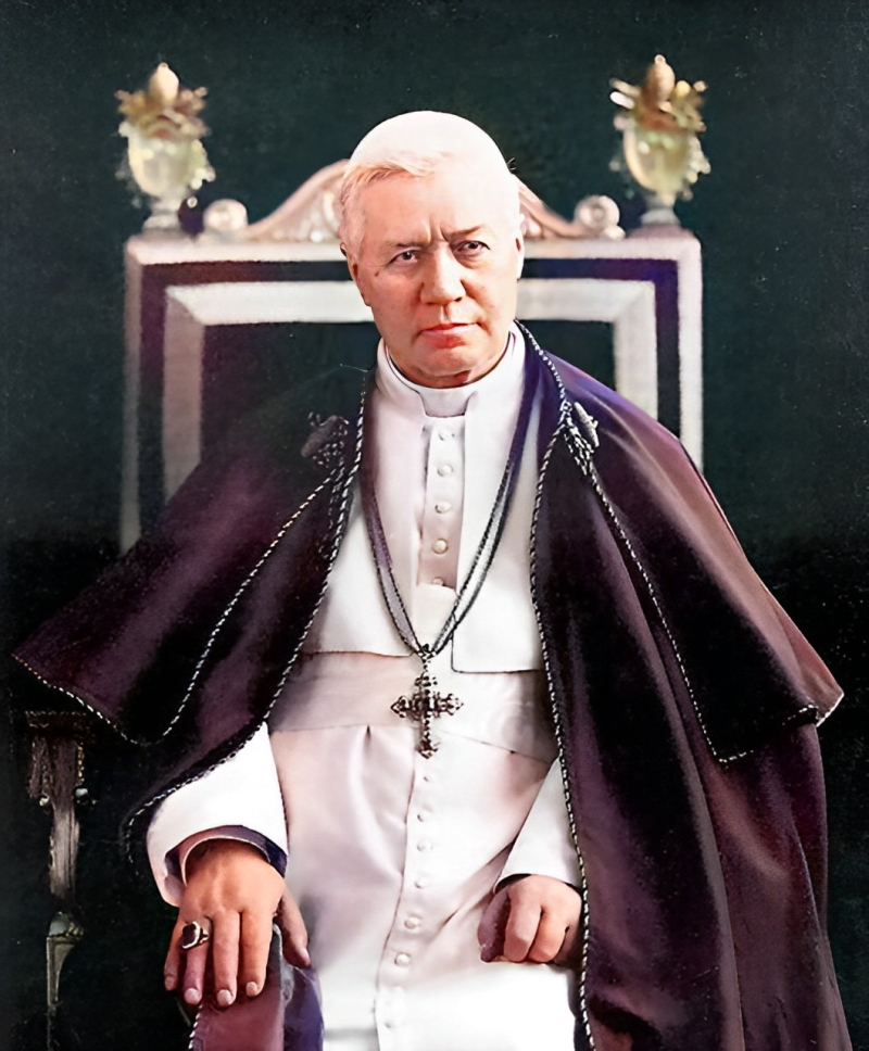 Se puede ver un poco de esto en la figura de San Pío X en el cuadro que está colocado en la sala de San Pío X en la [sede de la calle] Aureliano Coutinho [São Paulo] y que la considero mejor desde el punto de vista fisionómico que la fotografía grande, pero muy bella, del mismo San Pío X, en la sede del Alcázar. San Pío X aparece allí con una tal fuerza de expresión en su fisonomía que uno ve que es un héroe que no retrocede ante nada y no teme a nada. Pero hay tanta dulzura irradiando de su fisonomía, tanta bondad, que es imposible no quererle y respetarle. Es la verdadera grandeza católica en su buena expresión.