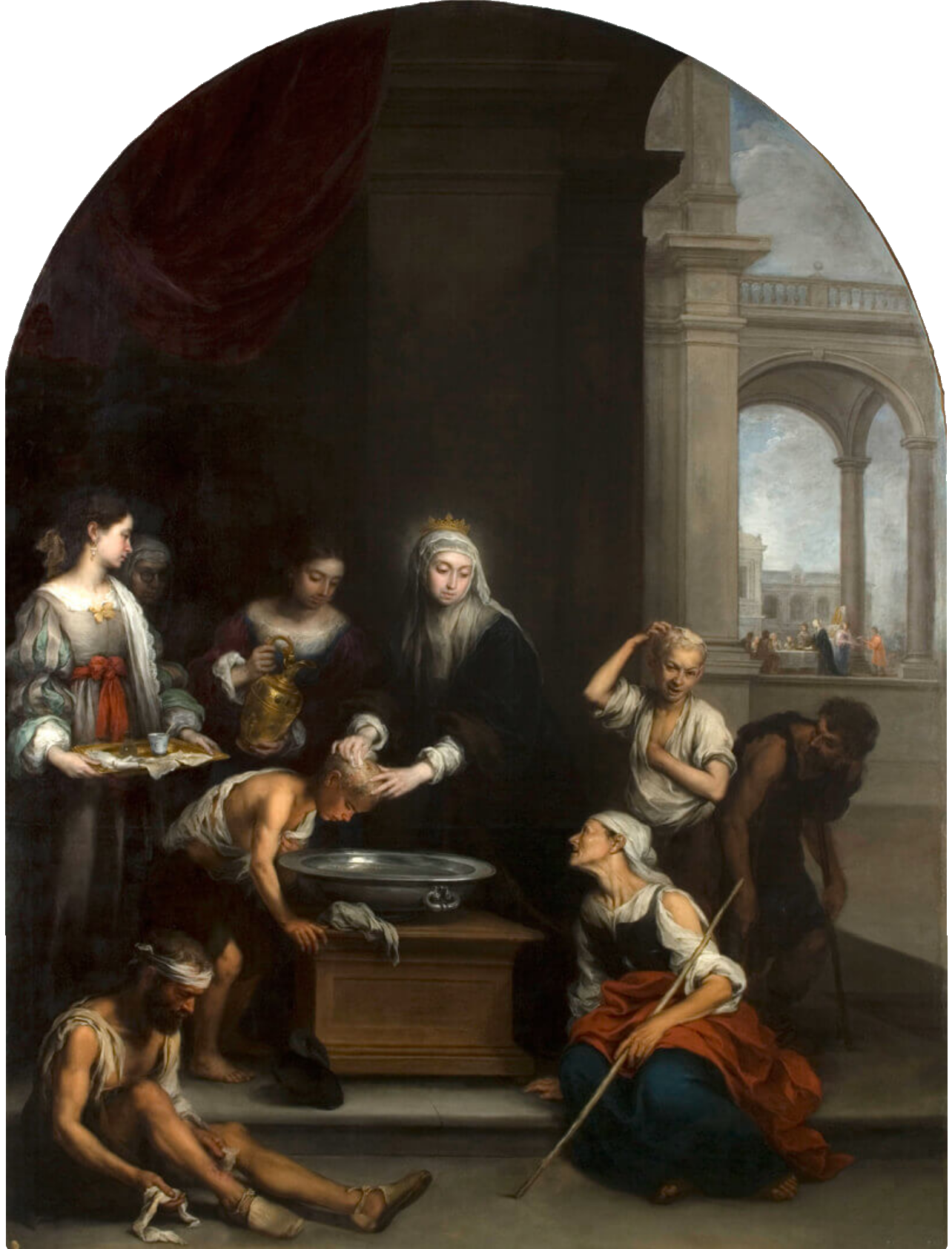 Él fue, vio al leproso tendido en la cama, arrancó la sábana y dijo: “¿Qué es esto? ¿Qué significa ese hombre tendido en la cama?”. Ella respondió: “Esposo mío, este hombre es nuestro Señor Jesucristo”. Al decir esto, se produjo el milagro, el duque vio a Nuestro Señor Jesucristo en la persona del leproso, y sintió un admirable olor a rosas que salía de la persona del leproso. Quedó profundamente impresionado y la suegra perdió el partido…